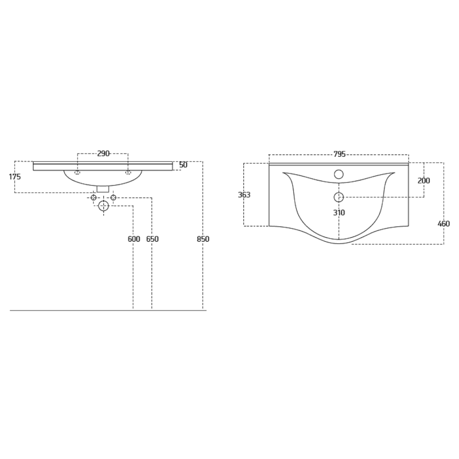 ZARA 80 Keramik-Waschtisch 79,5x46cm, weiss