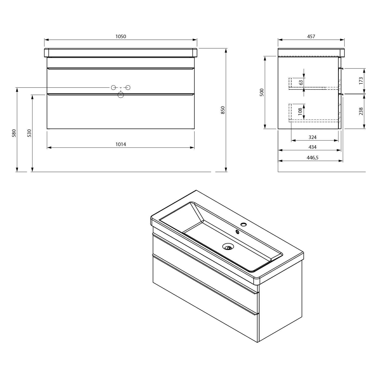 THALIE 105 Keramik-Waschtisch 105x46cm, weiss