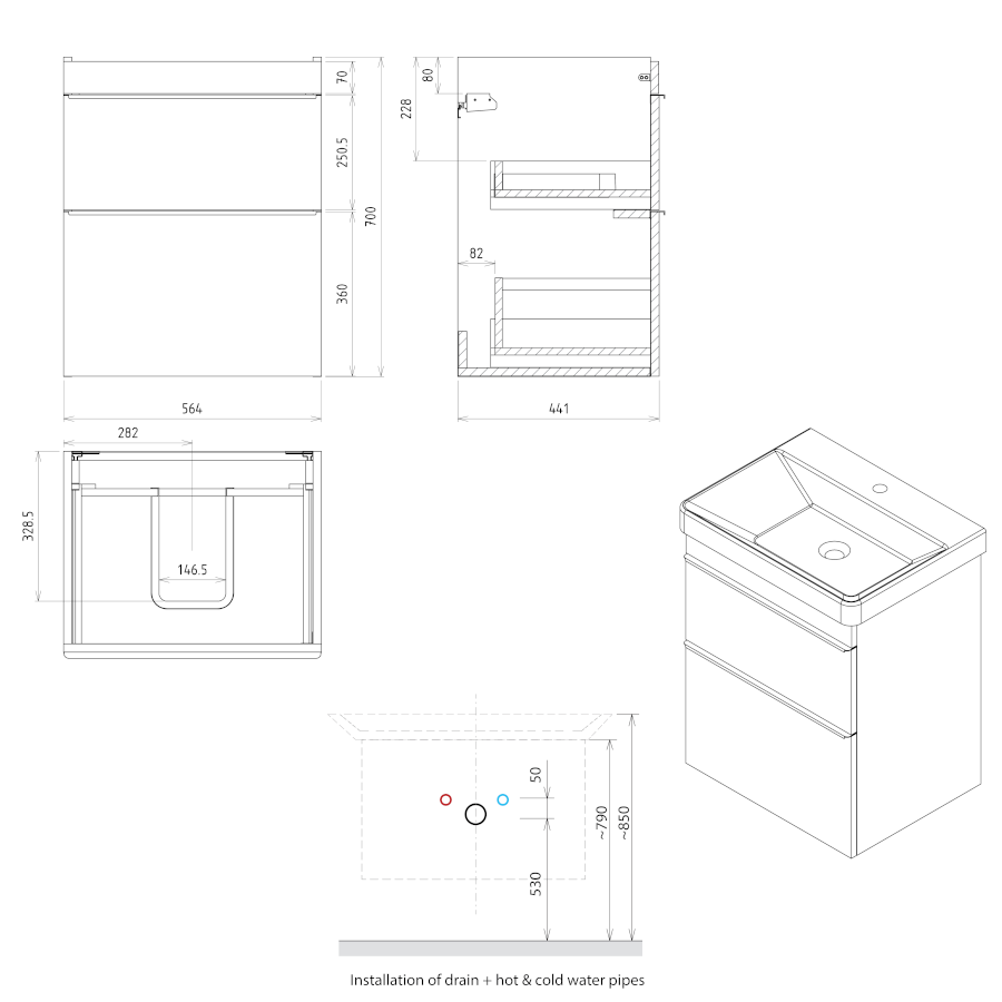564 mm |