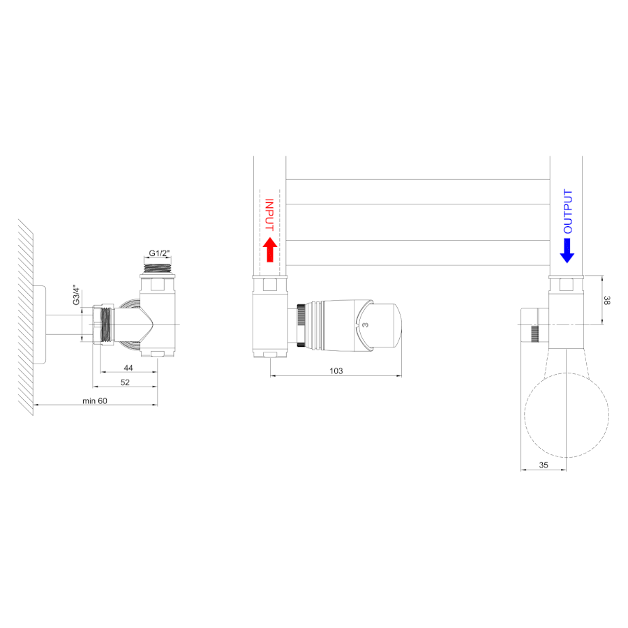 Thermostat, Heizkopf links; Thermostat, Heizkopf rechts; Ecken |