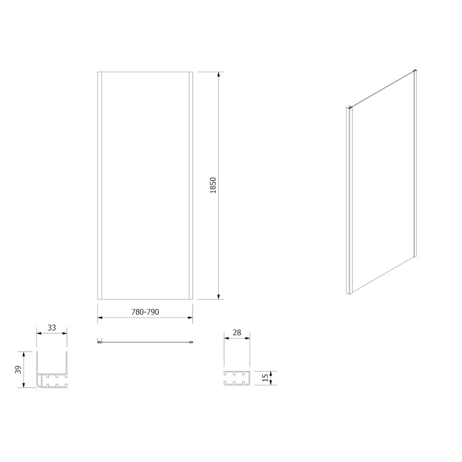 Feste Wand zur Duschtür |