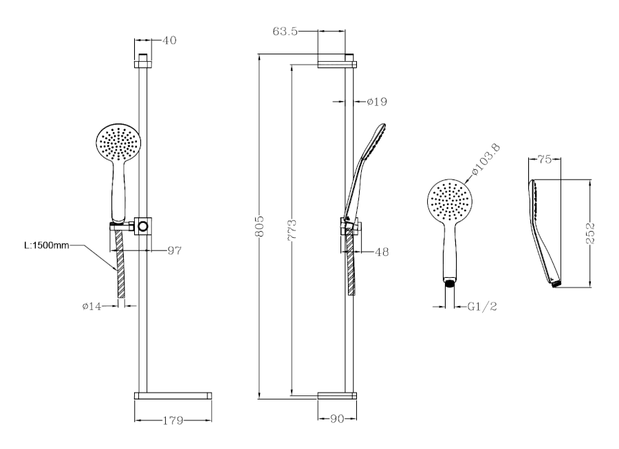 1 Funktion; Set: + Halter + Schlauch 150 cm; AntiCalc; Einstellbare Abstände für die Montage |
