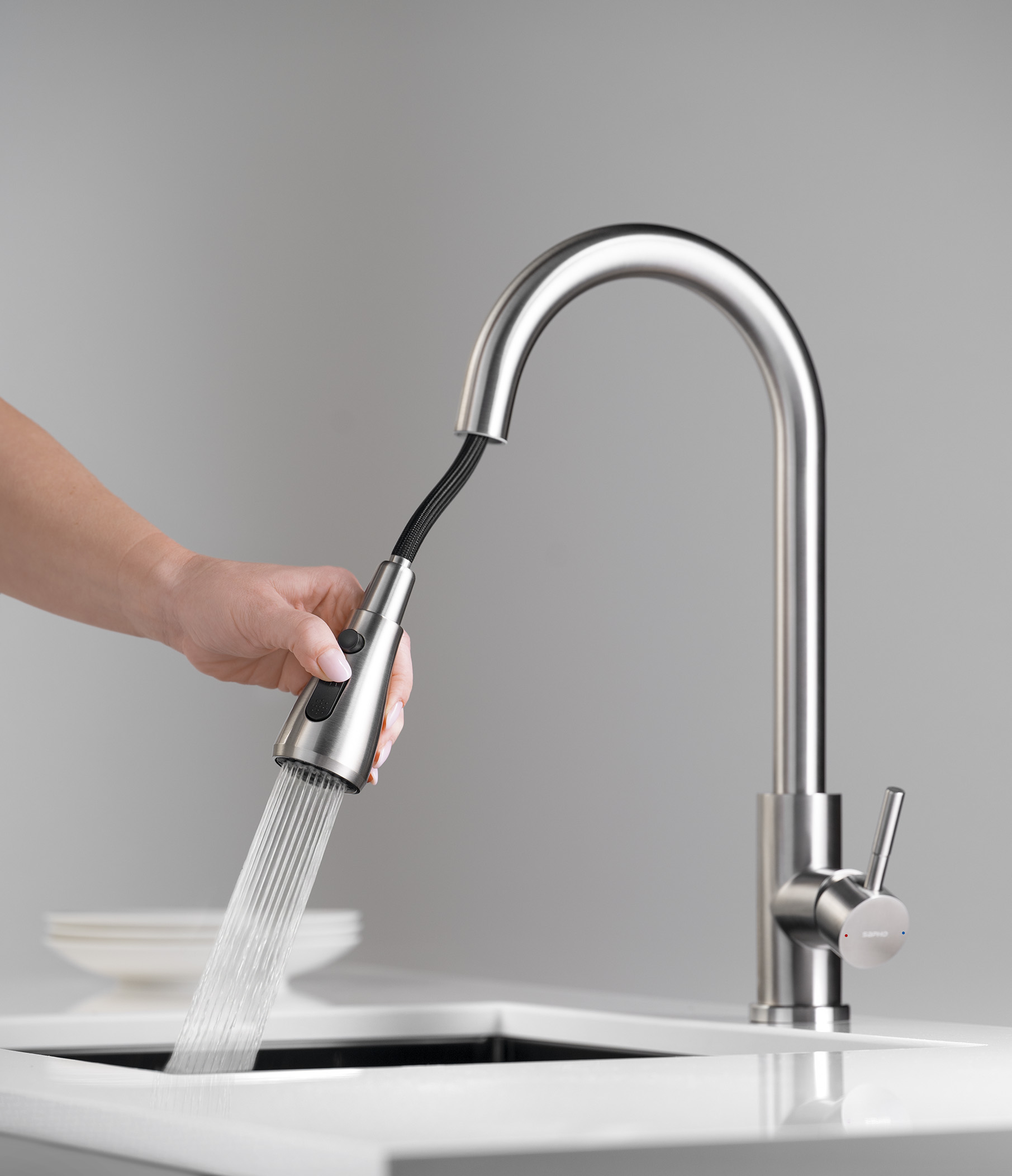 Ausziehbarer Einlauf/Spülbrause; Drehbarer Wasserauslauf |