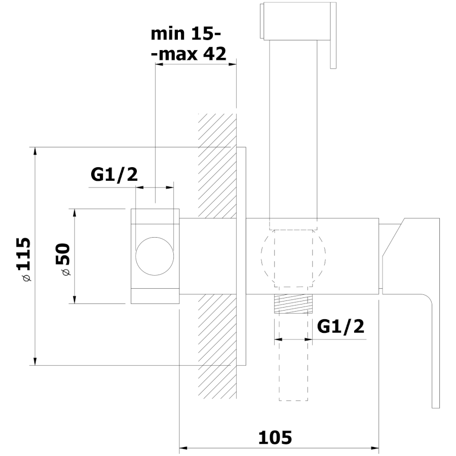 SIEGER Bidet Unterputz-Armatur mit Stop-Brause, Rund, Chrom