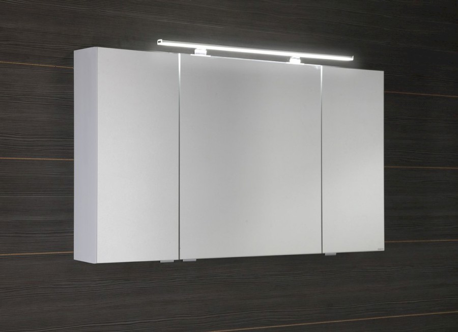 MIRRÓ Spiegelschrank mit LED Beleuchtung, 3x Türen, 120x70x16cm, weiß