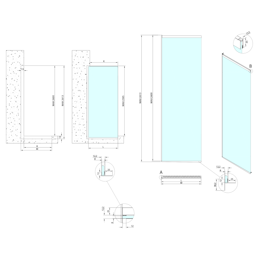 Einwandig Duschabtrennungen fest |