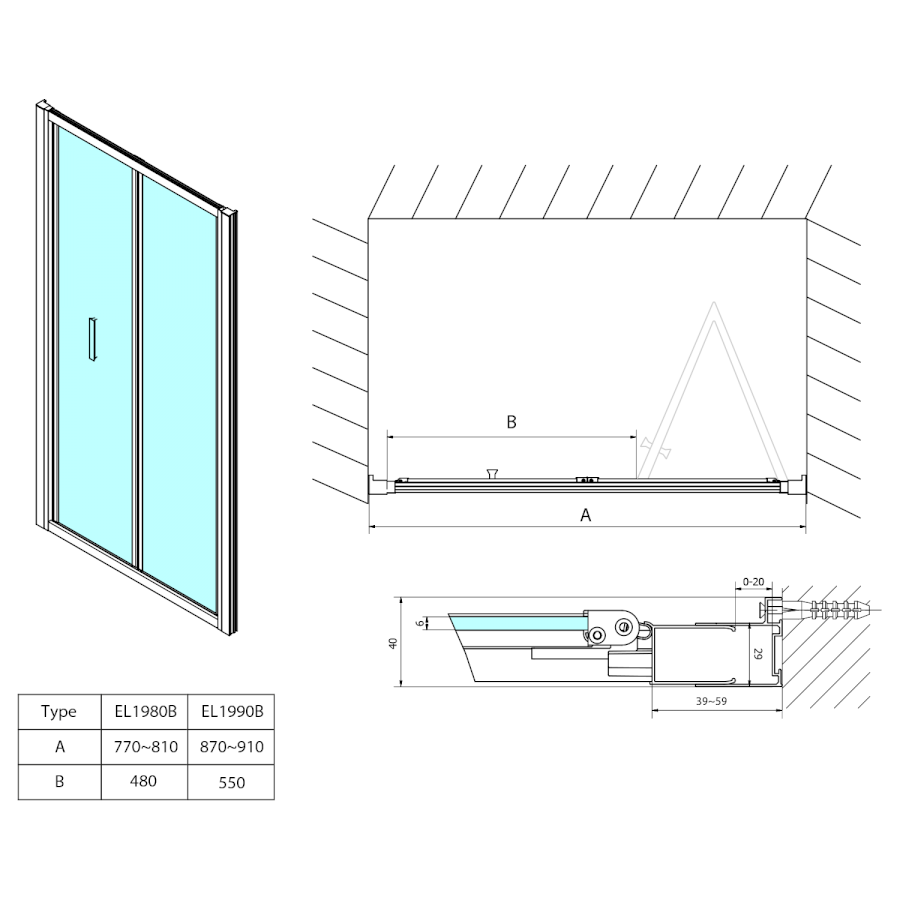 EASY BLACK sprchové dveře skládací 900mm, čiré sklo EL1990B