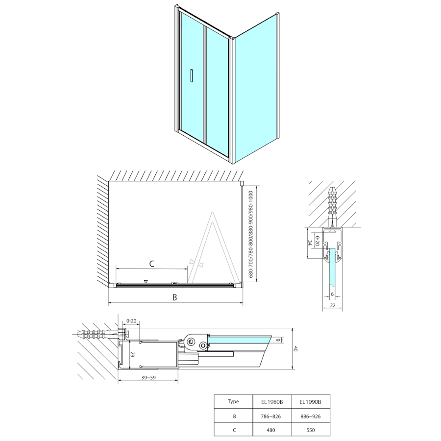 EASY Duschfalttür 900mm, Klarglas