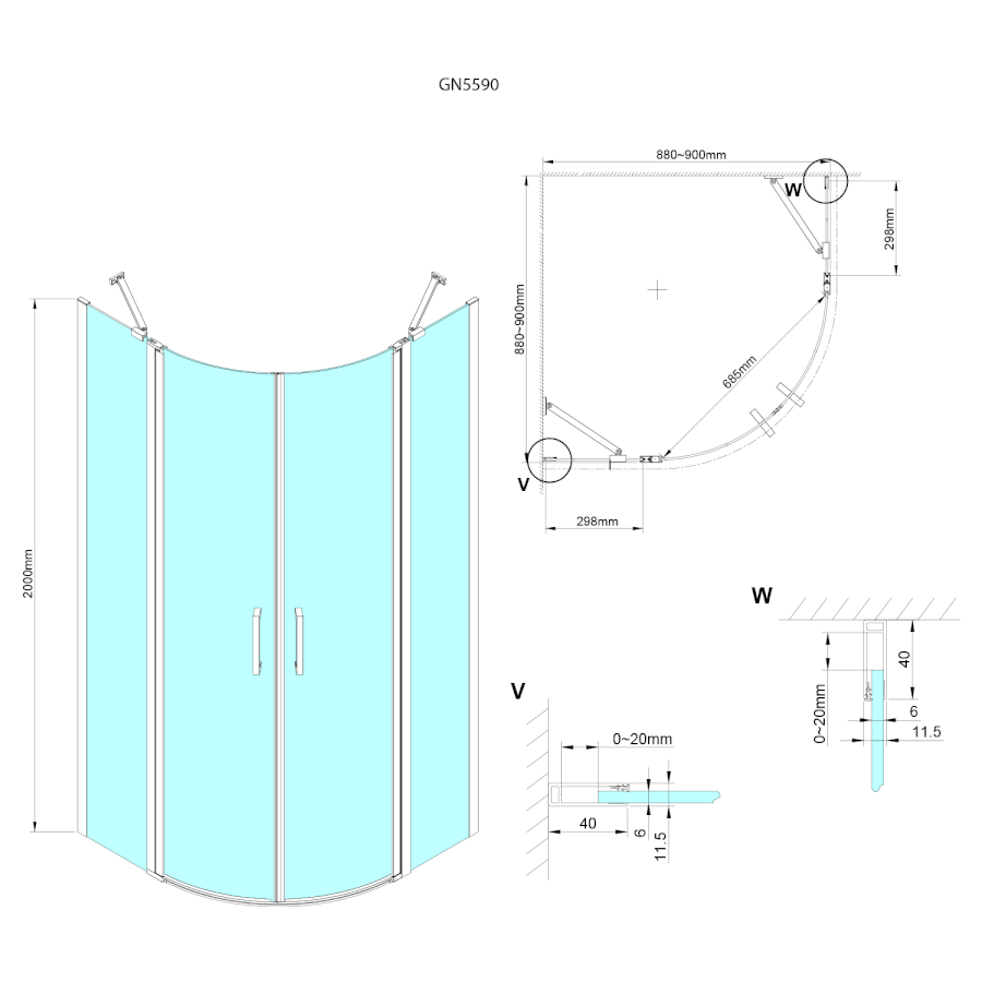 Viertelkreis-Duschabtrennungen |