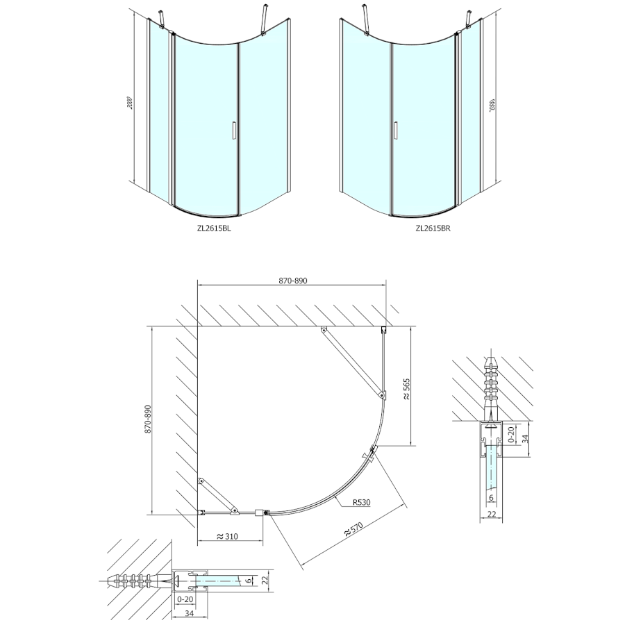 Viertelkreis-Duschabtrennungen |
