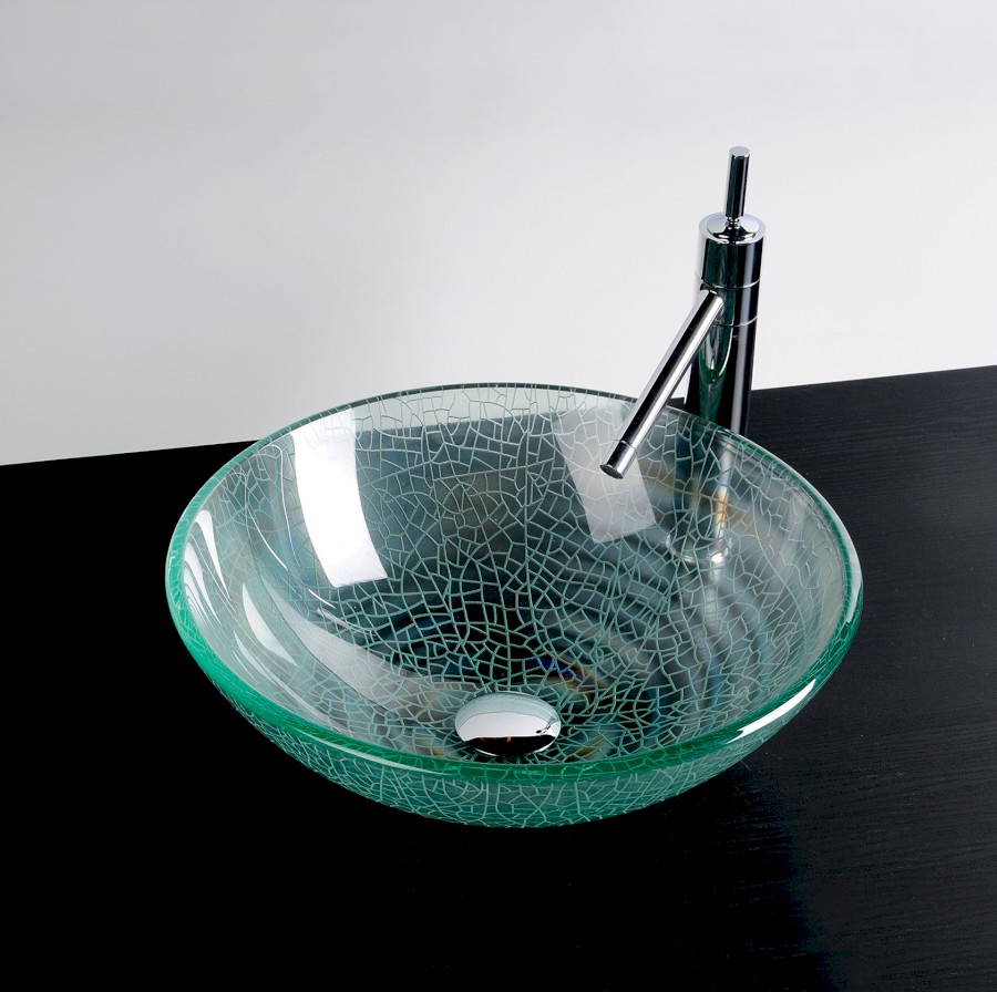 ICE Glaswaschbecken für Arbeitsplatte Ø 42 cm, klar mit Sandstrahlen