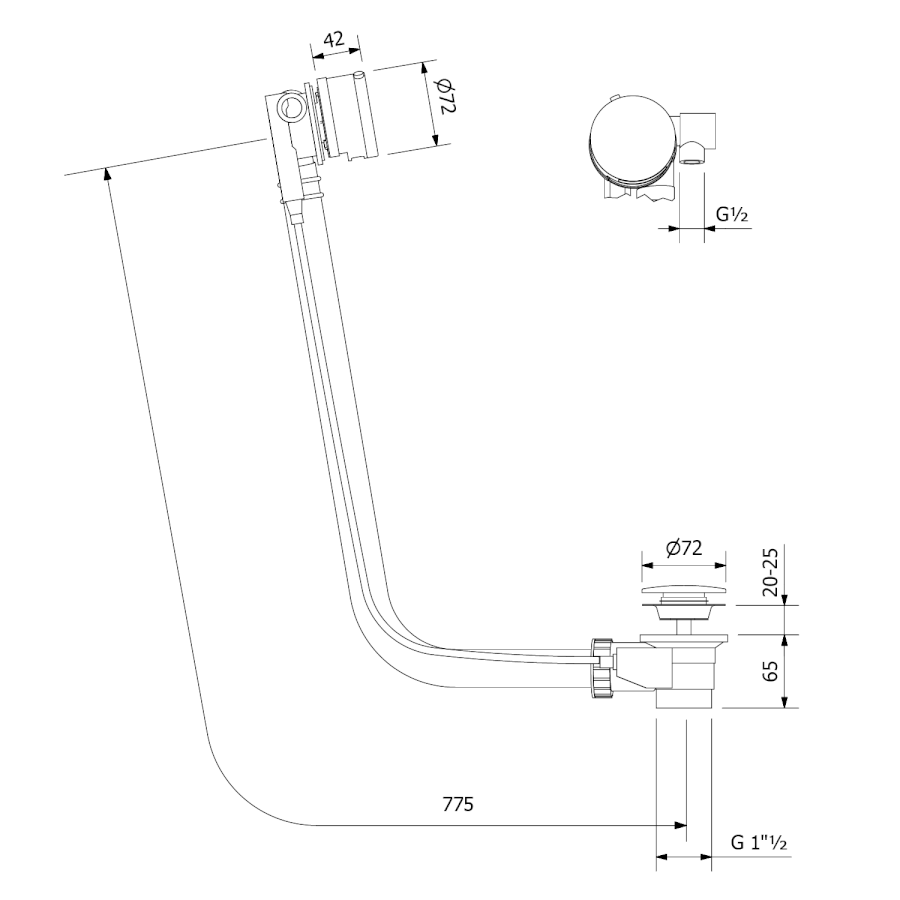 MARBLE Ablaufgarnitur mit Einlauf, Bowden, Länge 775mm, Chrom