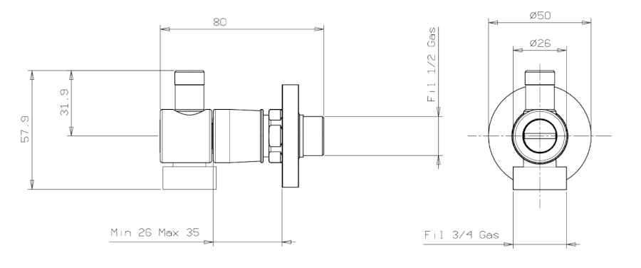 1. Připravte standardní trubky připojení Ø 1/2". Nainstalujte nástěnnou část rohového připojení a otevřete hlavní uzávěr vody, aby systém byl pod tlakem. | 2. Když je systém pod tlakem, použijte manometr a tlak zkontrolujte. | 3. Na nástěnnou část rohového připojení nasaďte ochranné plastové krytky, které jsou součástí balení, a následně zazděte a obložte obkladem. | 4. Za pomoci imbusového klíče upravte pozici nástěnné části rohového připojení. |