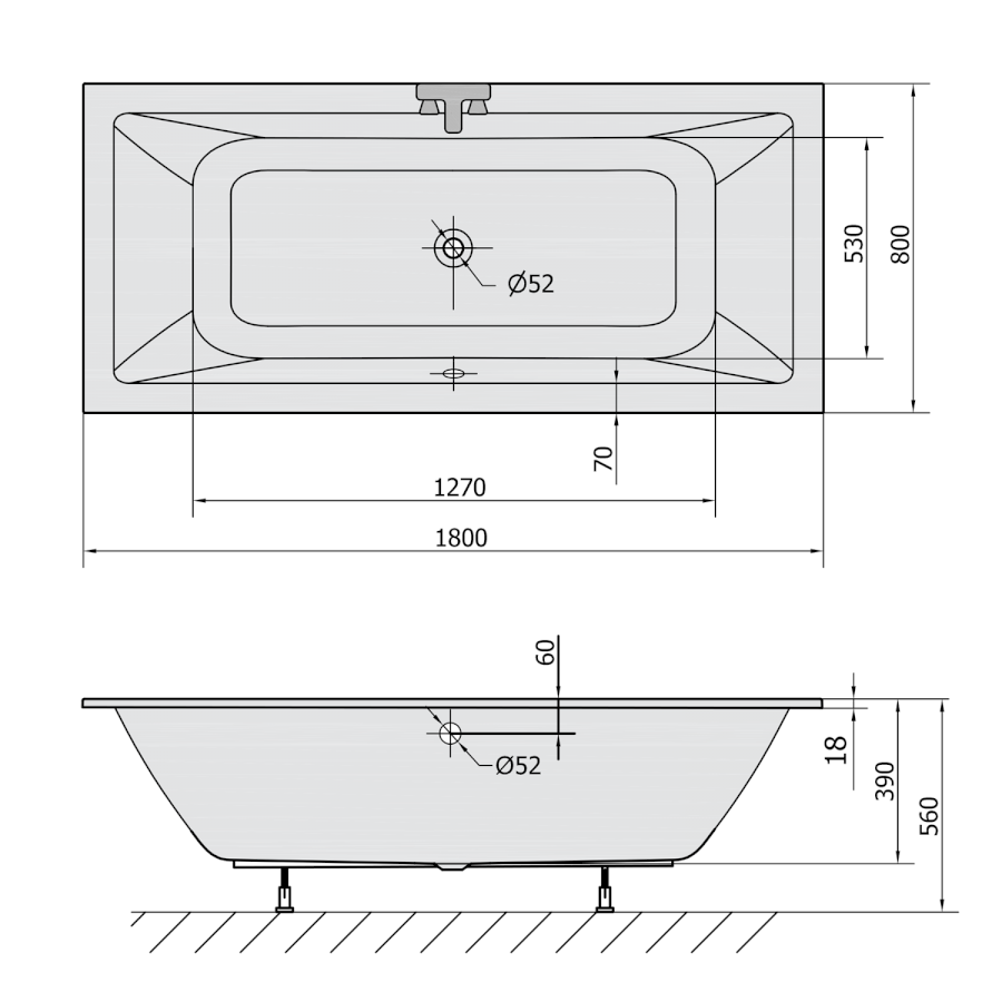 KRYSTA Rechteckwanne 180x80x39cm, weiß