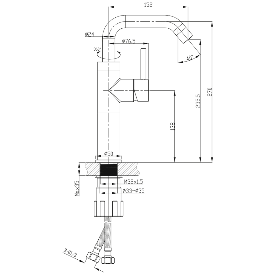 Verlängerte Halterung für Armatur, M32*1,5x80mm
