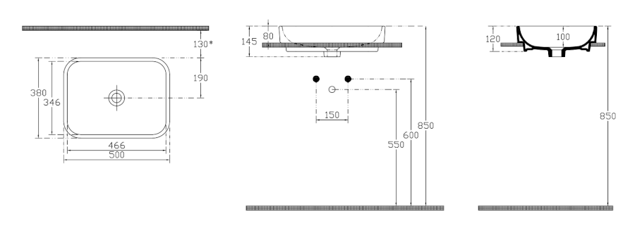 Versenktes Waschtisch |