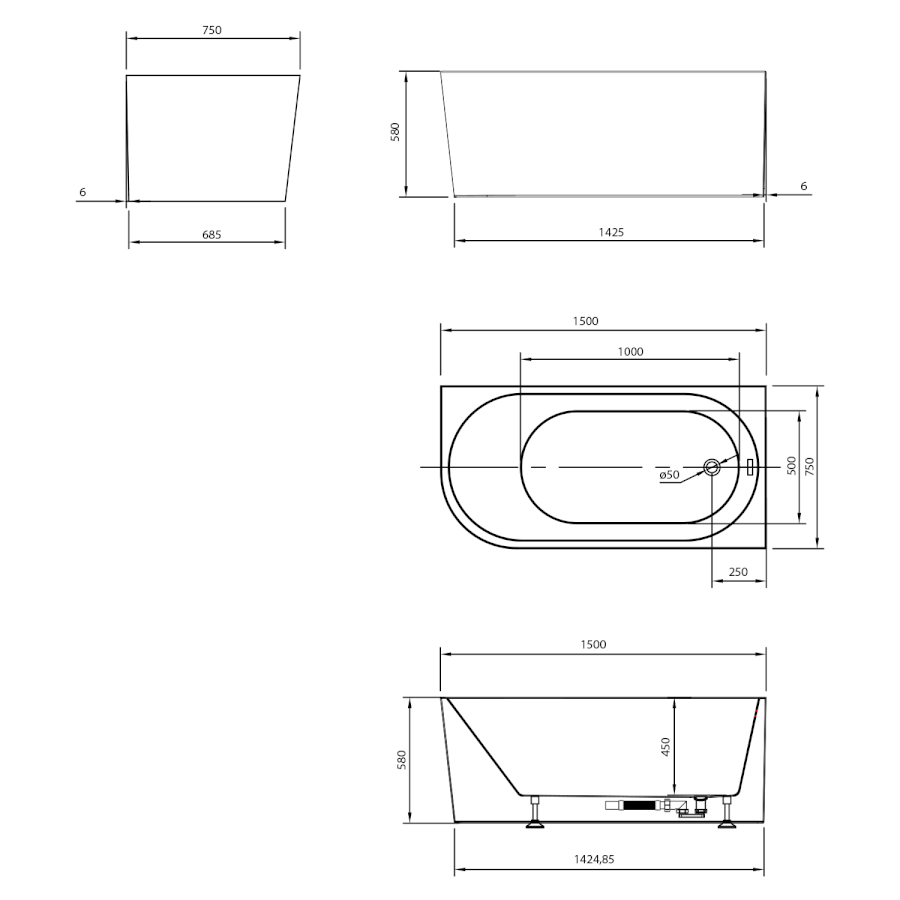Ablaufgarnitur; Siphon; Verstellbare Füße |
