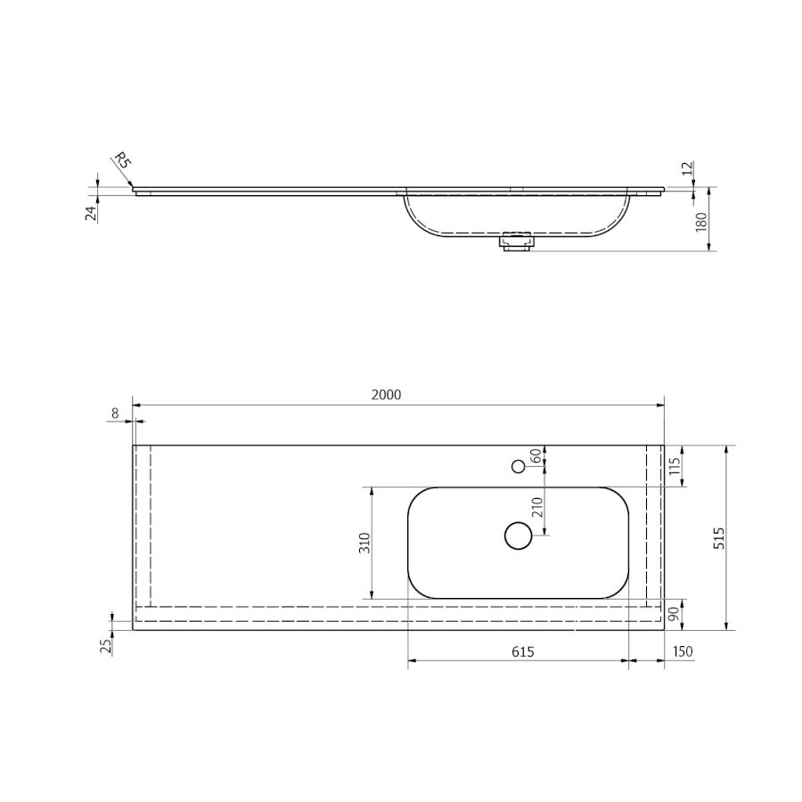 | Loch für Armatur |