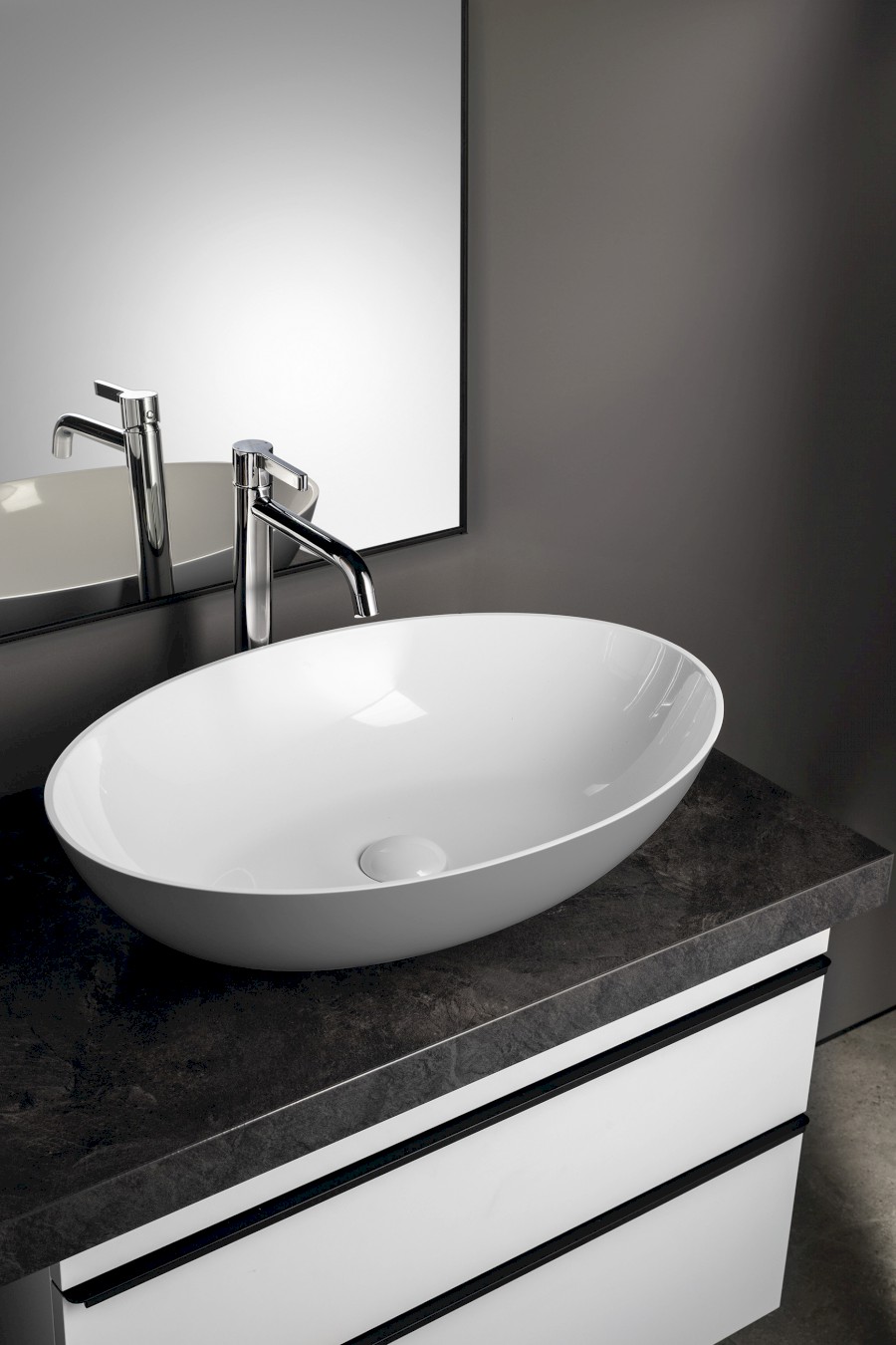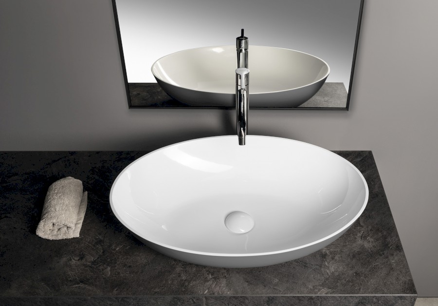 BANERA OVAL Waschbecken zum Setzen, Gussmarmor, 60x40cm, Weiß/Grau matt