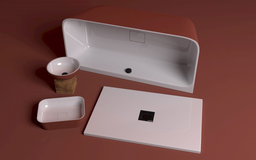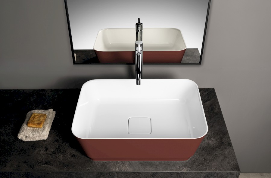BANERA SQUARE Waschbecken zum Setzen, Gussmarmor, 50x36cm, Weiß/Braun matt