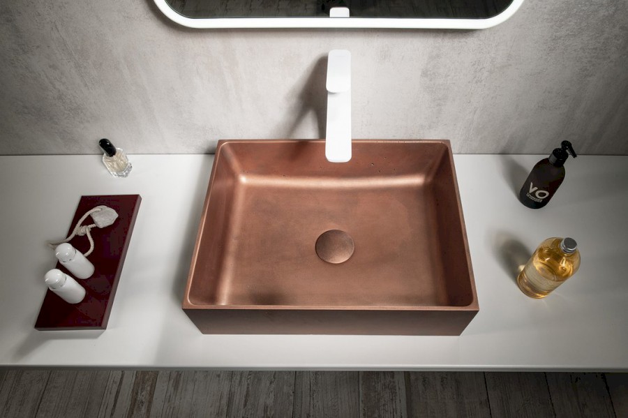 FORMIGO Betonwaschbecken zum Aufsetzen, 47,5x36,5cm, Kupfer