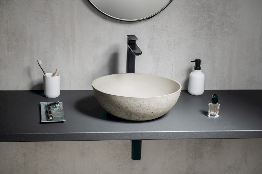 FORMIGO Betonwaschbecken zum Aufsetzen, Durchmesser 39cm, Sand
