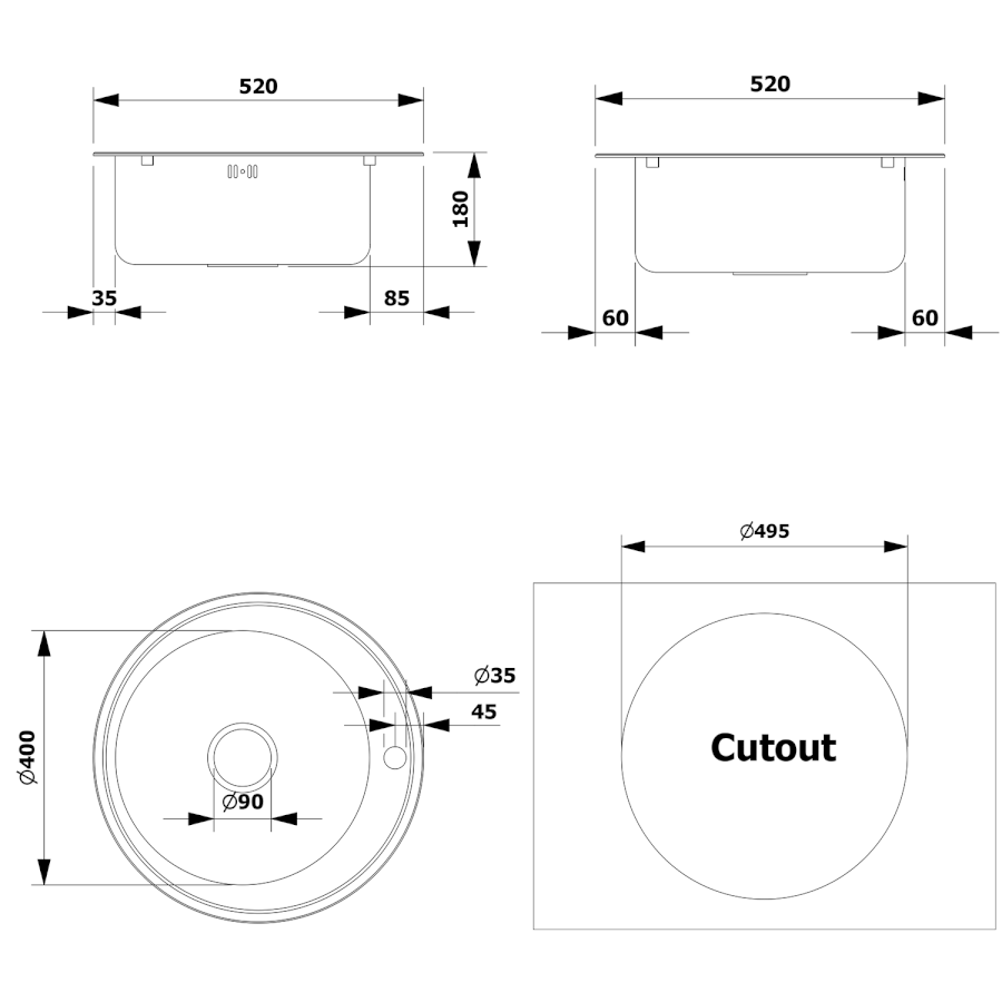 | Loch für Armatur |