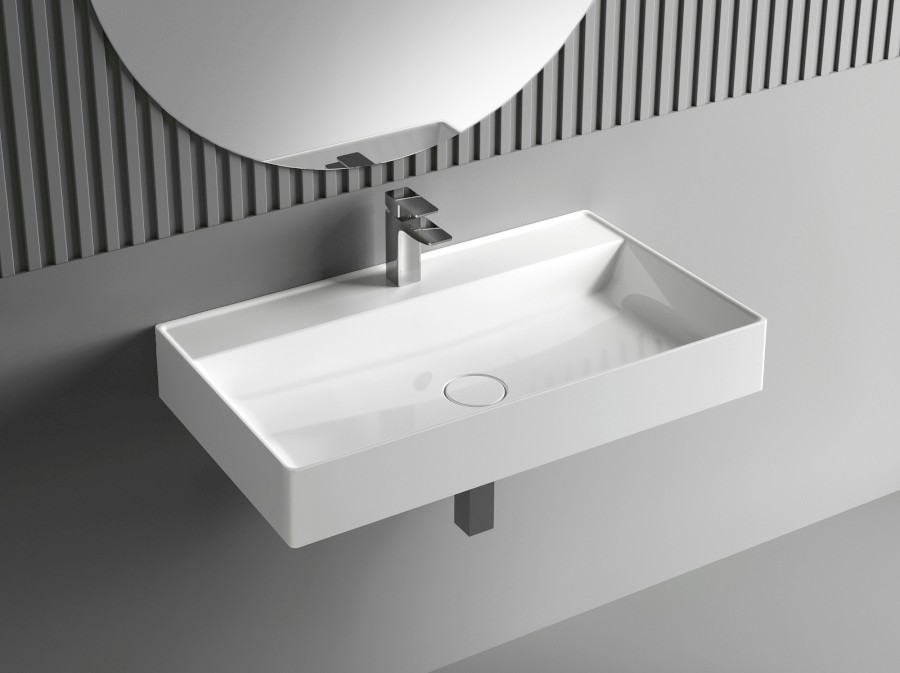 TWIG Gussmarmor-Waschtisch inkl. Ablaufabdeckung 80x47cm, weiß