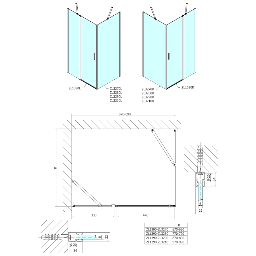ZOOM sprchové dveře 900mm, čiré sklo ZL1390