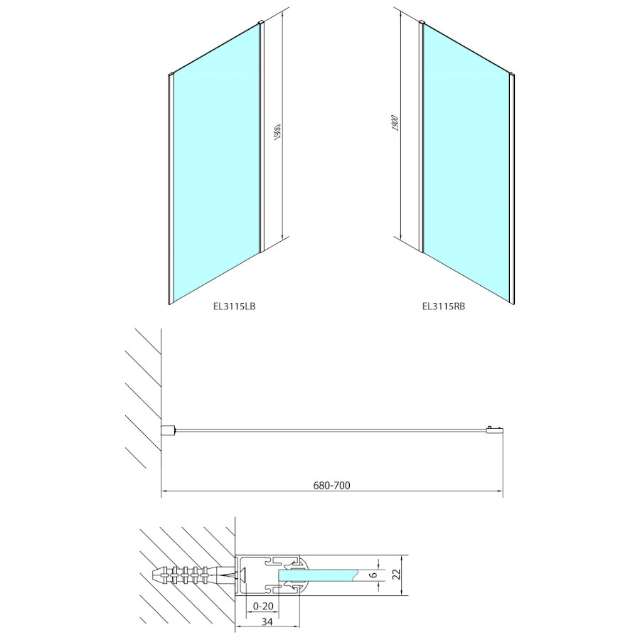 Feste Wand zur Duschtür |
