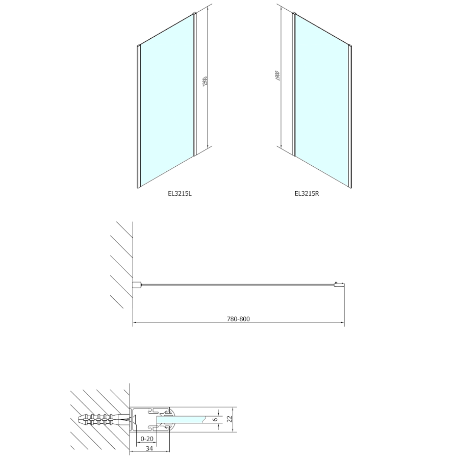 Feste Wand zur Duschtür |