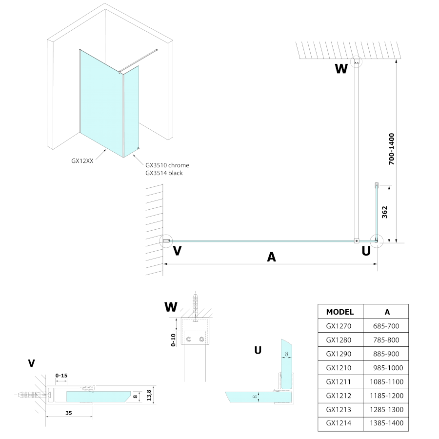 VARIO přídavný panel 350mm, čiré sklo, chrom GX3510