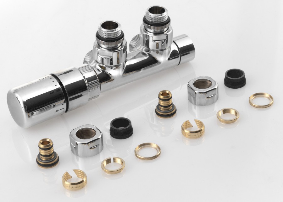Inklusive Universal-Klemmverschraubung für (ØCU 15 mm) und Alupex (Ø16x2 mm). Für den Anschluss des Badheizkörpers muss nichts anders bestellt werden.
