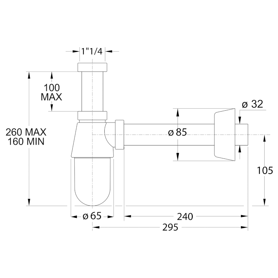 THERMOTRAP Waschtisch-Siphon, 5/4", Abfluss 32mm, Chrom