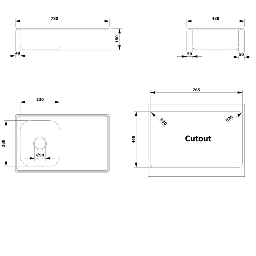 Mindestbreite des Spülenschranks
